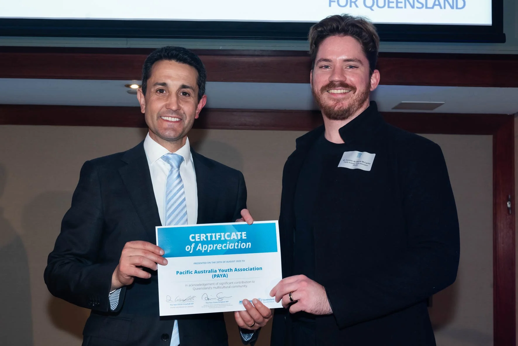 PAYA Co-CEO Dominic de Moura McCarthy attended the Queensland Multicultural Community Reception, hosted by Premier of Queensland Hon David Crisafulli MP.